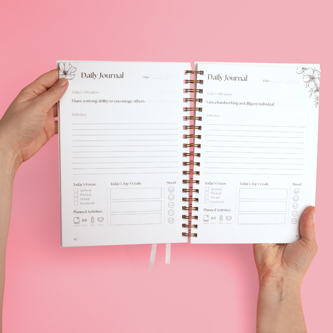 A daily journal and tool to incorporate in your mindfulness practice. Each day provides a new affirmation, the ability to track you activity, and mood, outline of your top three goals, and space for reflection.